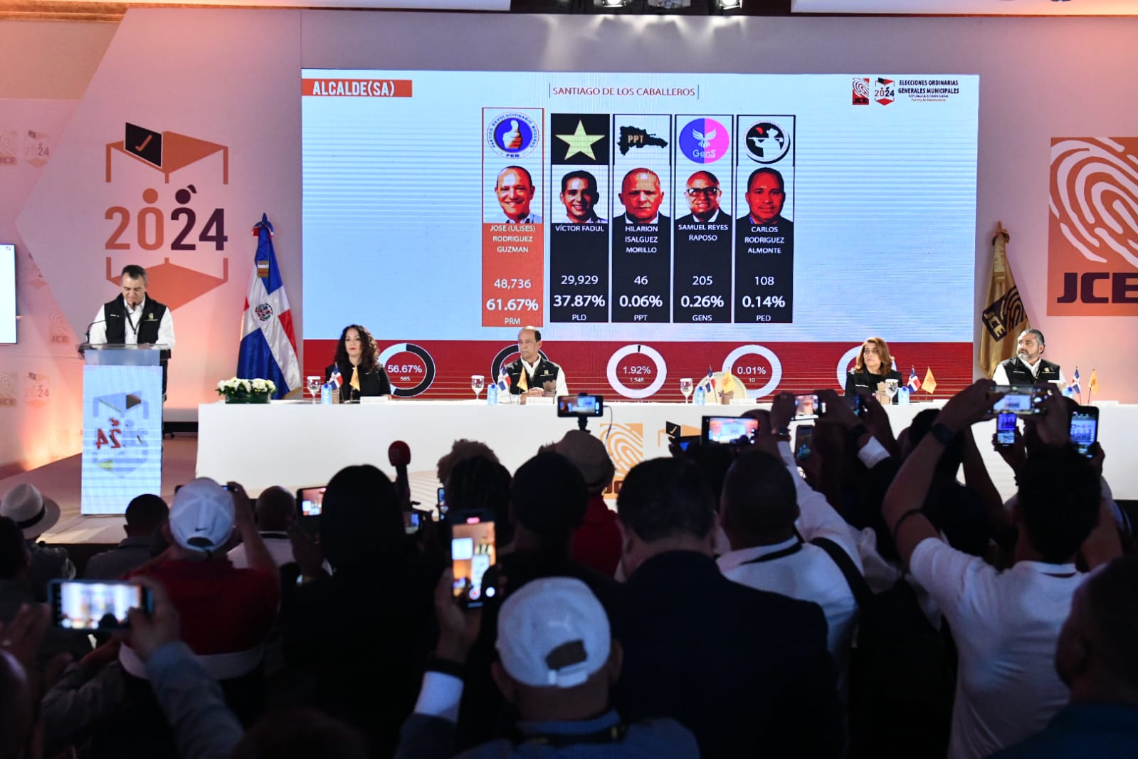 La Junta Central Electoral (JCE) inició a las 08:00 de la noche, como se tenía previsto, la transmisión del escrutinio de más del 20 % de los votos de las elecciones municipales de este domingo 18 de febrero.