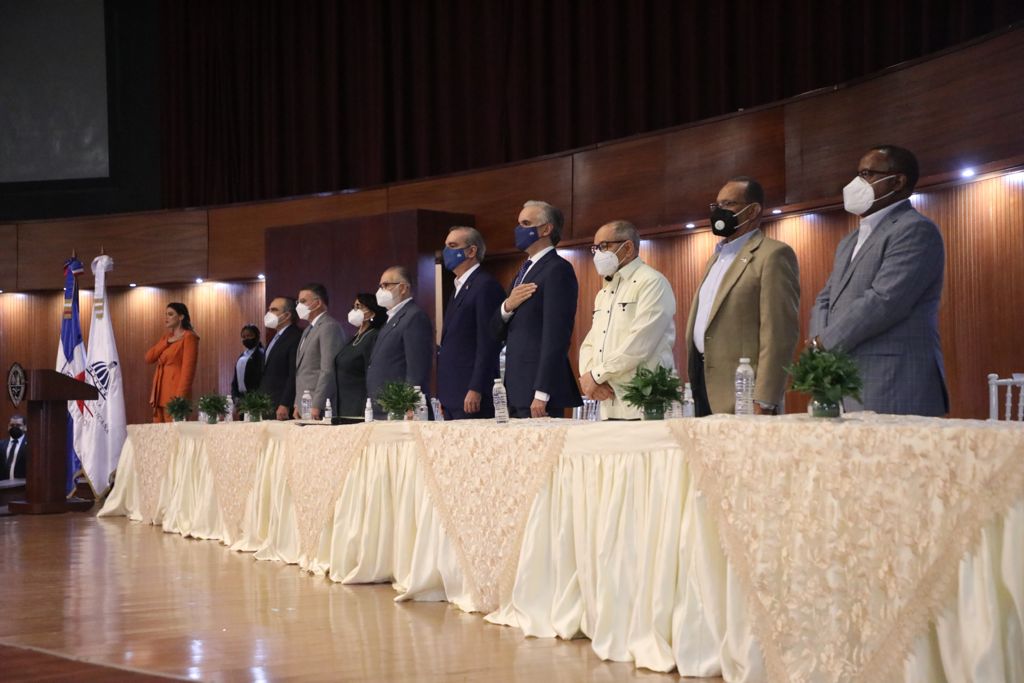 El mandatario estuvo acompañado, además, por el ministro de Economía, Planificación y Desarrollo, Miguel Ceara Hatton; la rectora de la UASD, Emma Polanco; el presidente de la Confederación Nacional de Unidad Sindical (CNUS), Rafael -Pepe- Abreu; y el secretario general de la Confederación Autónoma Sindical Clasista (CASC), Gabriel Del Río.